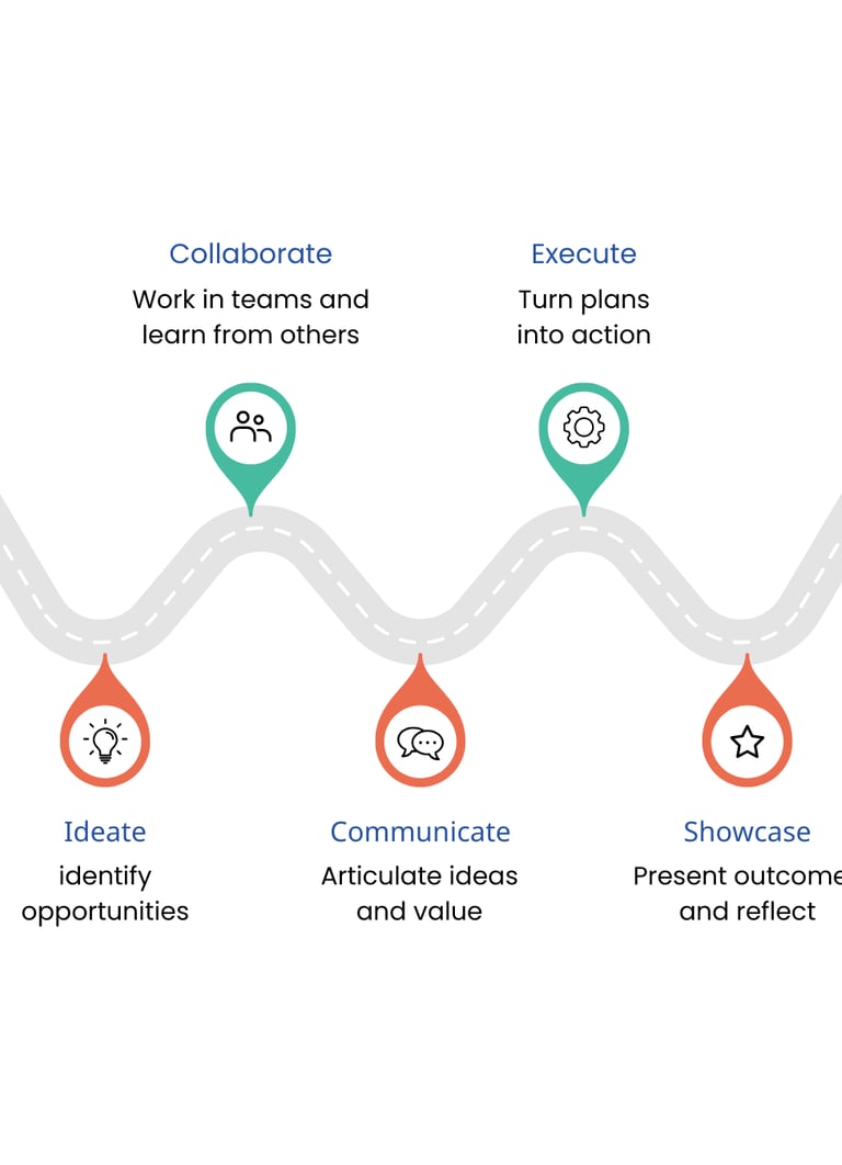 Ideate — Students explore ideas, identify opportunities, and think creatively.